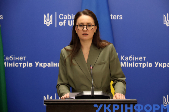 Прем’єр-міністр України Юлія Свириденко виступає з промовою під час спільного з Прем’єр-міністром Литви Інгою Ругінене, яка прибула до столиці з офіційним візитом, брифінгу, в межах якого оголосили про створення нової ініціативи з допомоги та реабілітації раніше викрадених Росією українських дітей та їх родин "Діти насамперед. Захистимо майбутнє України" Київ, 6 жовтня 2025 року.