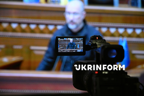 Міністр оборони України Денис Шмигаль виступає з трибуни на пленарному засіданні Верховної Ради України, під час якого парламент підтримав його відставку, а також – відставки першого віцепрем`єр-міністра - міністра цифрової трансформації Михайла Федорова та голови СБУ Василя Малюка, Київ, 13 січня 2026 року.