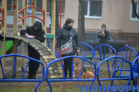 Співробітник Національної поліції України працює на місці падіння гвинтокрила ДСНС України ЕС-225 у житловому районі Броварів. Вертоліт впав поблизу дитячого садка, на місці падіння виникла пожежа. Унаслідок авіакатастрофи загинуло керівництво МВС. Серед жертв трагедії — четверо дітей. Бровари, Київська область, 18 січня 2023 року.