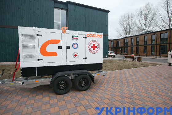 Генератор на території побудованого за підтримки Товариства Червоного Хреста України модульного містечка для тимчасового проживання ВПО, де розміщено сім багатоквартирних двоповерхових будинків, які розраховані на 112 квартир, Чернігів, 22 листопада 2023 року.