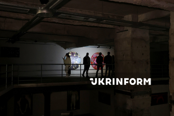 Відвідувачі оглядають експонати мистецького проєкту “Ковчег. Твори з колекції родини Гриньових”, присвяченого ювілею колекціонера Бориса Гриньова, у Центрі сучасного мистецтва “ЄрміловЦентр”, Харків, 4 квітня 2026 року. Ідея проєкту постала з досвіду евакуації колекції з Харкова навесні 2022 року, коли команда була змушена ухвалювати рішення про вивезення найцінніших творів. Ковчег уособлює простір порятунку культурної спадщини з метою відродження. Відкриття виставки та кураторська екскурсія відбулися за відсутності електроенергії. Відвідувачі підсвічували експонати ліхтарями на телефонах.