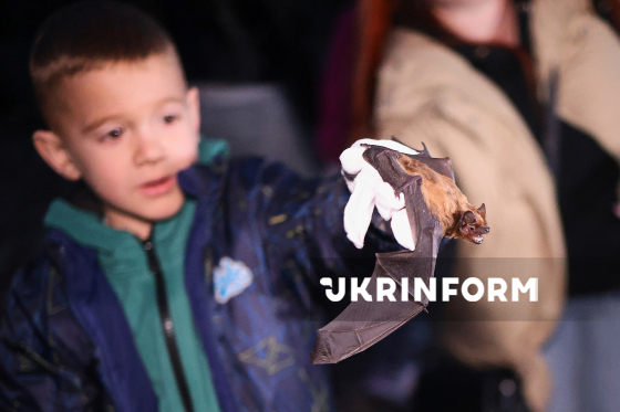 Хлопчик випускає врятованого кажана на волю під час щорічної чотирнадцятої акції з випуску кажанів у дику природу, проведеної фахівцями Центру реабілітації рукокрилих Фельдман Екопарку, Харків, 29 березня 2026 року. Цього року волонтери випустили 1500 кажанів. Центр реабілітації рукокрилих у Фельдман Екопарку працює з 2013 року, і за ці роки врятував понад 40 тисяч тварин, дбаючи про них взимку та повертаючи до природного середовища навесні.