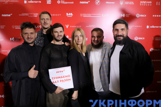 Команда серіалу "Служба 112" позує для фото на червоній доріжці у межах церемонії відкриття 16-го Одеського міжнародного кінофестивалю, який з міркувань безпеки цьогоріч триватиме до 4 жовтня у столиці, у концертно-виставковому центрі "Парковий", Київ, 24 вересня 2025 року.