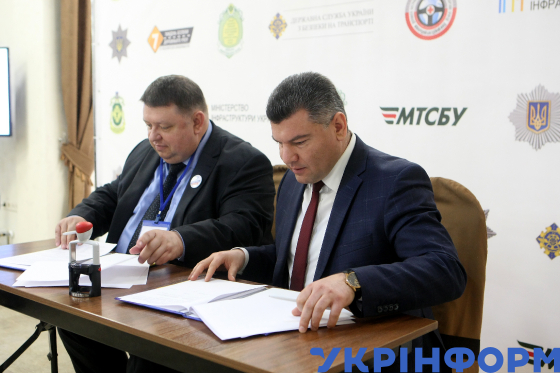 Організатор та координатор Тижня безпеки дорожнього руху, директор КМФ ДП "Український науково-дослідний інститут медицини транспорту" МОЗ України Юрій Чорний та голова Державної служби України з безпеки на транспорті Михайло Ноняк (зліва направо) під час щорічного Національного форуму з безпеки на транспорті в рамках проведення 5-го Глобального тижня безпеки дорожнього руху ООН підписали Угоду про співпрацю та взаємодію в готелі "Козацький", Київ, 7 травня 2019 року.