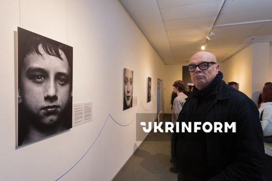 Відвідувачі виставки "Ниточка: Трансформація замість зламаності" - спільного проєкту БФ "Голоси дітей" та фотографині Марти Сирко, присвяченого дитячому досвіду війни, - до четвертих роковин повномасштабного російського вторгнення в Україну, Київ, 19 лютого 2026 року.