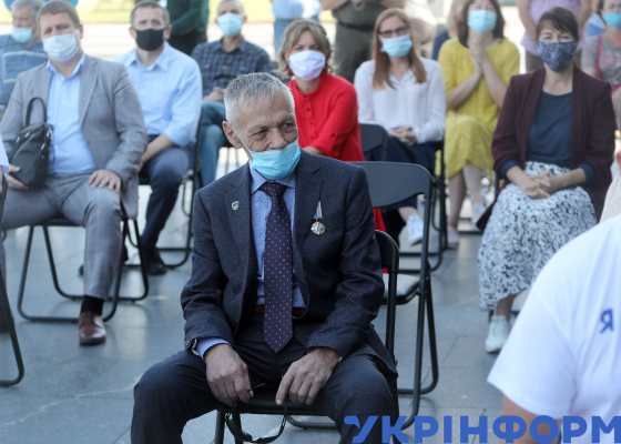 Звільнений з російського полону політв`язень Олексій Сизонович під час відкриття виставки “Вільні”, присвяченої українцям, які були заарештовані й засуджені російською федерацією та “ДНР” і “ЛНР”, на території Меморіального комплексу “Національний музей історії України у Другій світовій війні”, Київ, 10 вересня 2020 року.