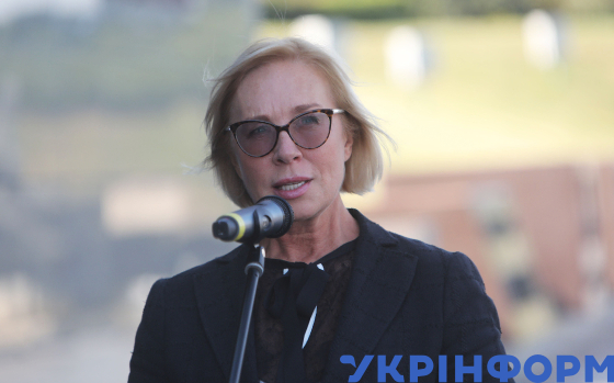 Уповноважена Верховної Ради України з прав людини Людмила Денисова під час відкриття виставки “Вільні”, присвяченої українцям, які були заарештовані й засуджені російською федерацією та “ДНР” і “ЛНР”, на території Меморіального комплексу “Національний музей історії України у Другій світовій війні”, Київ, 10 вересня 2020 року.