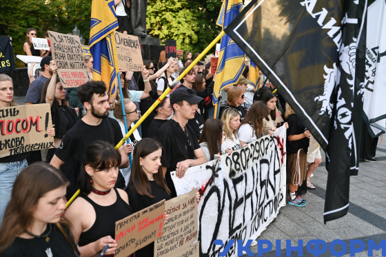 Містяни вшановують пам`ять військовополонених, які загинули внаслідок теракту в Оленівці, у День вшанування пам`яті захисників та захисниць України, учасників добровольчих формувань та цивільних осіб, які були страчені, закатовані або загинули у полоні, на площі перед пам`ятником Тарасові Шевченку, Львів, 28 липня 2025 року.