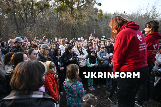 Волонтери Українського центру реабілітації рукокрилих випускають у природу врятованих восени-взимку кажанів на території Національного природного парку “Голосіївський”, Київ, 4 квітня 2026 року. Цієї зими зоозахисники Українського центру реабілітації рукокрилих врятували понад 500 кажанів у Києві та області. На території НПП “Голосіївський” для них встановили спеціальні будиночки.