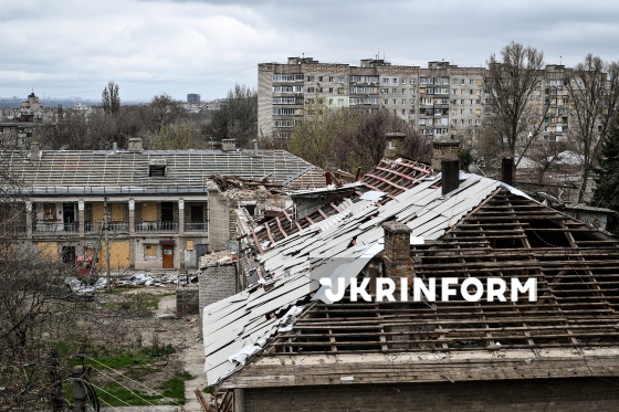 Ремонтні роботи на даху одного з двоповерхових будинків, що зазнав руйнувань внаслідок російського обстрілу Запоріжжя наприкінці 2025 року, Запоріжжя, 31 березня 2026 року. За останні два місяці комунальні служби демонтували близько 770 кв. м шиферного даху, уклали нову мембрану та обрешітку і відремонтували стропильні конструкції. З початку року у Запоріжжі відновили дахи приблизно на 4 000 кв. м у шести будинках. Ще більш як 10 000 кв. м покрівель зараз ремонтуються на дев’яти будинках. Планується ремонт покрівлі ще одинадцяти будинків.
