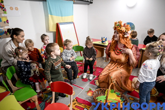 Аніматорка розважає дітей під час заняття у закладі дошкільної освіти (ясла-садок) №100 “Гармонія”, Запоріжжя, 21 жовтня 2025 року. Вперше з початку повномасштабного вторгнення РФ в Україну у Запоріжжі відновили роботу тринадцять ясельних груп для дітей до трьох років у дев`яти закладах дошкільної освіти. Працюють вони у скороченому режимі — до трьох годин.