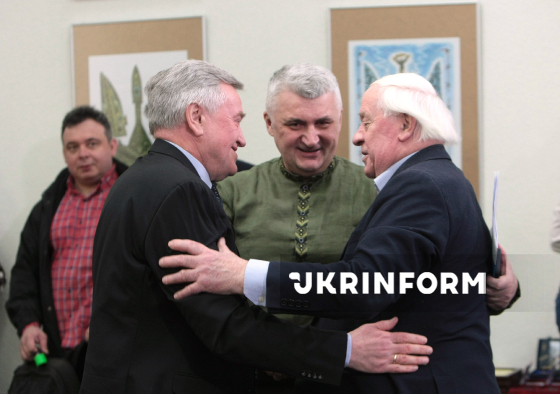 Голова Державного комітету з питань телебачення і радіомовлення Олег Наливайко, генеральний директор Укрінформ Сергій Череватий (зліва направо) беруть участь в урочистому заході з нагоди 108-ї річниці від дня заснування Українського національного інформаційного агентства “Укрінформ”, Київ, 16 березня 2026 року.
