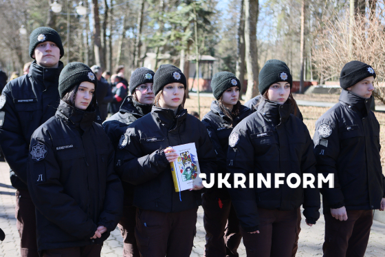 Вихованці Івано-Франківського ліцею імені Андрія Приймаченка Міністерства внутрішніх справ України беруть участь у літературно-мистецькому свята, присвяченому 212-й річниці від дня народження українського поета та художника Тараса Шевченка, біля пам`ятника Кобзарю, Івано-Франківськ, 9 березня 2026 року.