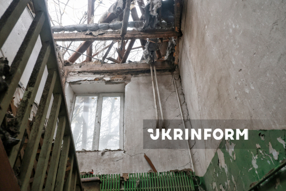 Наслідки російського обстрілу ударними дронами двоповерхового житлового будинку, Одеса, 4 лютого 2026 року. Унаслідок російського обстрілу ударними безпілотниками пошкоджень зазнали житлові будинки, цивільна та промислова інфраструктури, п’ятеро людей отримали травми.
