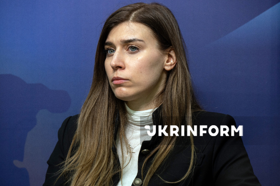 Уповноважена у справах Європейського суду з прав людини Маргарита Сокоренко бере участь у форумі до Дня спротиву окупації Автономної Республіки Крим та міста Севастополя "Крим: дім, за який ми боремось" в Українському національному інформаційному агентстві "Укрінформ", Київ, 26 лютого 2026 року.
