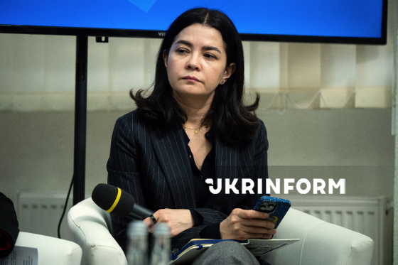 Головна редакторка видання "Українська правда" Севгіль Мусаєва бере участь у форумі до Дня спротиву окупації Автономної Республіки Крим та міста Севастополя "Крим: дім, за який ми боремось" в Українському національному інформаційному агентстві "Укрінформ", Київ, 26 лютого 2026 року.