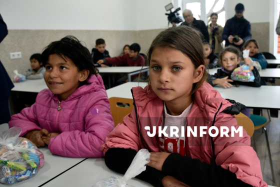 Дівчатка сидять за партами в одному з класів першого корпусу Комплексного соціального, освітнього, розвивального та спортивного центру "HUB "Благо", Ужгород, 27 березня 2026 року. Новий центр створено як багатофункціональний простір, що об’єднав соціальні, освітні та спортивні ініціативи для мешканців міста та ромської громади.