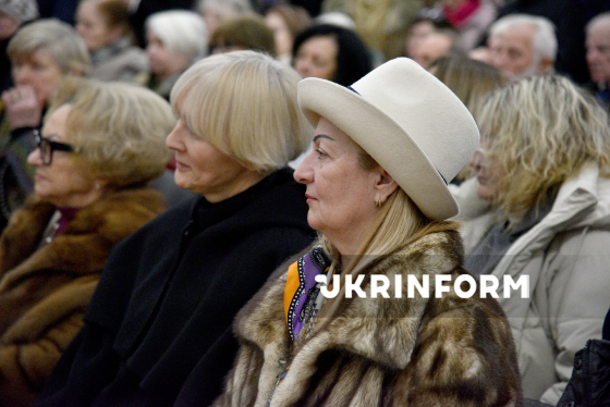 Відвідувачі слухають промови на відкритті виставки творів академіка НАОМУ, народного художника України, лауреата Національної премії імені Тараса Шевченка Володимира Микити в Закарпатському обласному художньому музеї імені Йосипа Бокшая, Ужгород, 30 січня 2026 року.