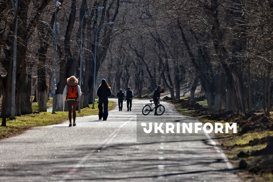 Люди відпочивають у парку поблизу Чорного моря, Одеса, 10 березня 2026 року.
