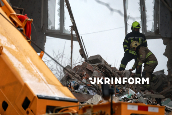 Рятувальники спільно з комунальними службами у пошуках людей вручну розбирають завали житлового будинку, де внаслідок російської дронової атаки обвалилися квартири з четвертого по другий поверх, Одеса, 27 січня 2026 року. У ніч на 27 січня російські терористи масовано атакували Одесу ударними безпілотниками. У низці багатоповерхових будинків було зруйновано та пошкоджено десятки квартир, понівечено фасади, вибито вікна. Кількість загиблих внаслідок атаки зросла до трьох осіб.