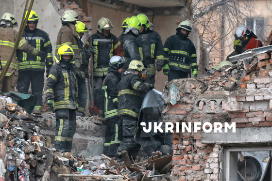 Рятувальники перекладають у санітарний мішок тіло загиблої жінки, яку було знайдено під завалами житлового будинку, де внаслідок російської дронової атаки обвалилися квартири з четвертого по другий поверх, Одеса, 27 січня 2026 року. У ніч на 27 січня російські терористи масовано атакували Одесу ударними безпілотниками. У низці багатоповерхових будинків було зруйновано та пошкоджено десятки квартир, понівечено фасади, вибито вікна. Кількість загиблих внаслідок атаки зросла до трьох осіб.