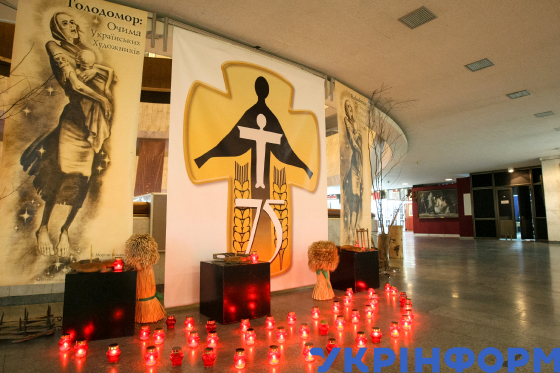 Експозиція виставки "Голодомор: Очима українських художників" із нагоди 75-х роковин вшанування пам’яті жертв Голодомору 1932-1933 років" у Центрі ділового та культурного співробітництва "Український дім", Київ, 18 листопада 2008 року. Фото Олександра Космача.