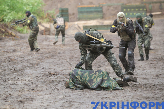 Війна війна в Україні російсько-українська війна тренування тренінг навчання вишкіл ЗСУ ДФТГ полігон тренувальний табір зброя військовослужбовець доброволець балаклава Київська область