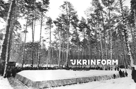 Учасники мітингу вшановують пам’ять жертв сталінських репресій у Биківнянському лісі біля братської могили, у якій перепоховані останки репресованих, відібрані для судово-медичної експертизи під час ексгумації, проведеної за рішенням Урядової комісії, Київ, 1989 рік. Фото Олександра Малаховського.