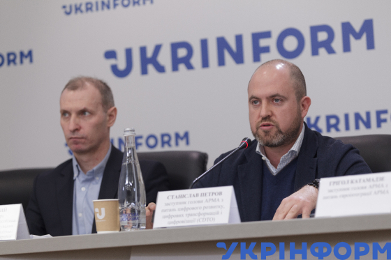 Заступник голови АРМА з питань цифрового розвитку, цифрових трансформацій і цифровізації (CDTO) Станіслав Петров під час засідання комісії з питань проведення конкурсного відбору юридичних осіб, які здійснюють реалізацію арештованих активів, в Українському національному інформаційному агентстві "Укрінформ", Київ, 20 березня 2024 року.