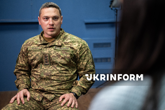 Речник Національної гвардії України Руслан Музичук дає інтерв`ю кореспонденту Українського національного інформаційного агентства “Укрінформ” Єлизаветі Чірниш, Київ, 23 березня 2026 року.