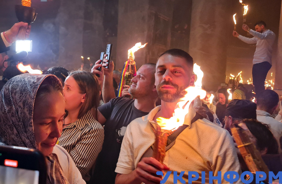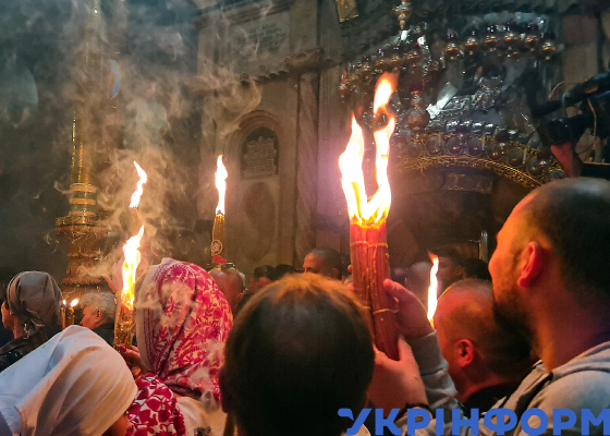 В Єрусалимі відбулася церемонія "сходження" Благодатного вогню в храмі над Гробом Господнім, яке відбувається протягом століть із року в рік та на яке чекають тисячі паломників з усього світу, Ізраїль, 4 травня 2024 року.