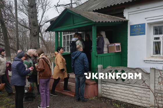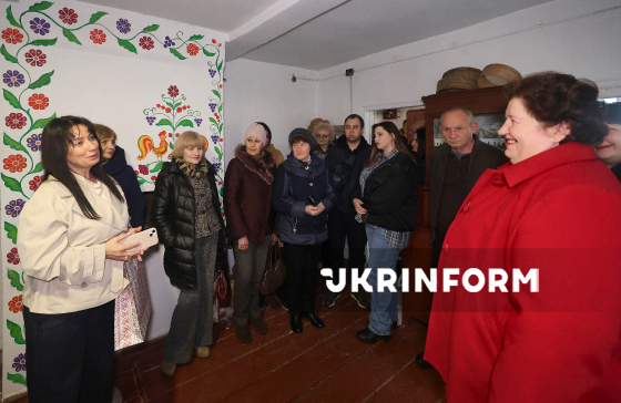 Відвідувачки роздивляються експонати в музеї Марусі Вольвачівни та історії села Черемушна, де відбувся захід з нагоди відзначення 185-річчя від дня народження поетеси, письменниці, громадсько-культурної діячки Марусі Вольвачівни (Марії Вольвач), Черемушна, Харківська область, 27 березня 2026 року.